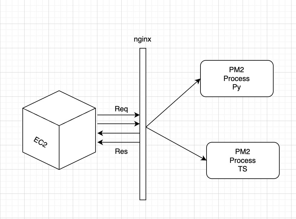 Once you have configured the nginx you can now use pm2 to start TypeScript and Python applications on different processes.